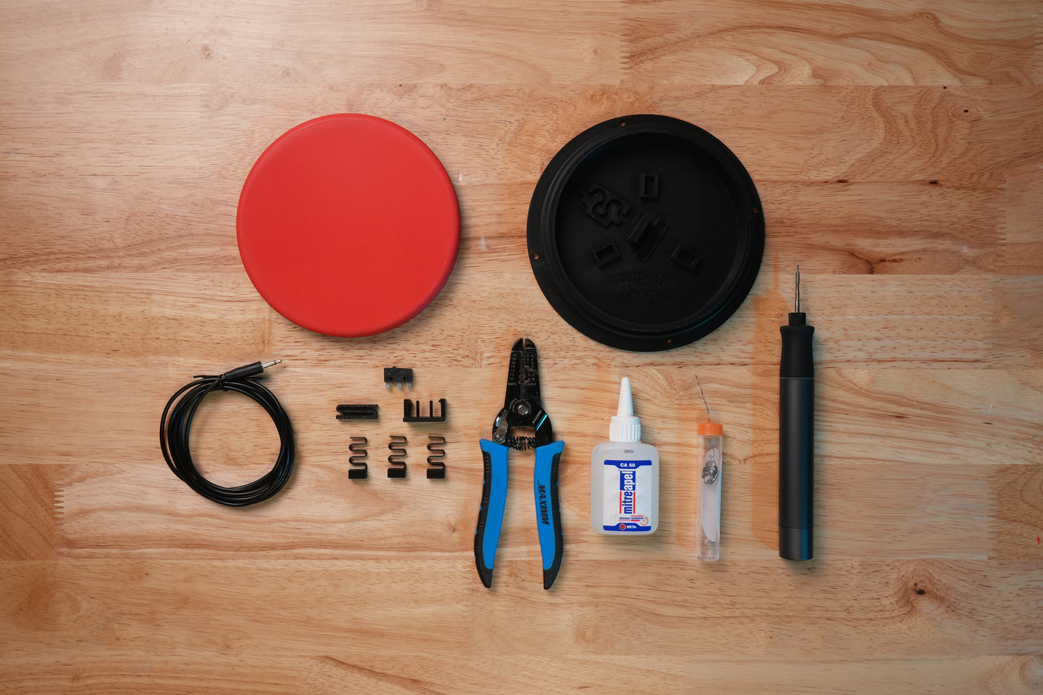 You’ll also need wire strippers, super glue, solder, and a soldering iron.