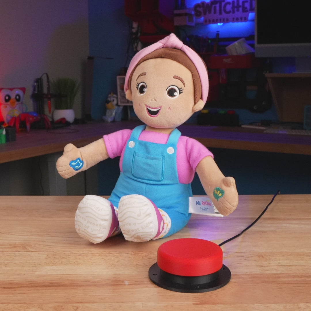 Perfect for children with limited mobility or motor challenges, this adaptation makes it possible for everyone to join in the fun. Simply plug in a switch, press, and watch Ms. Rachel come to life with encouraging words and music!